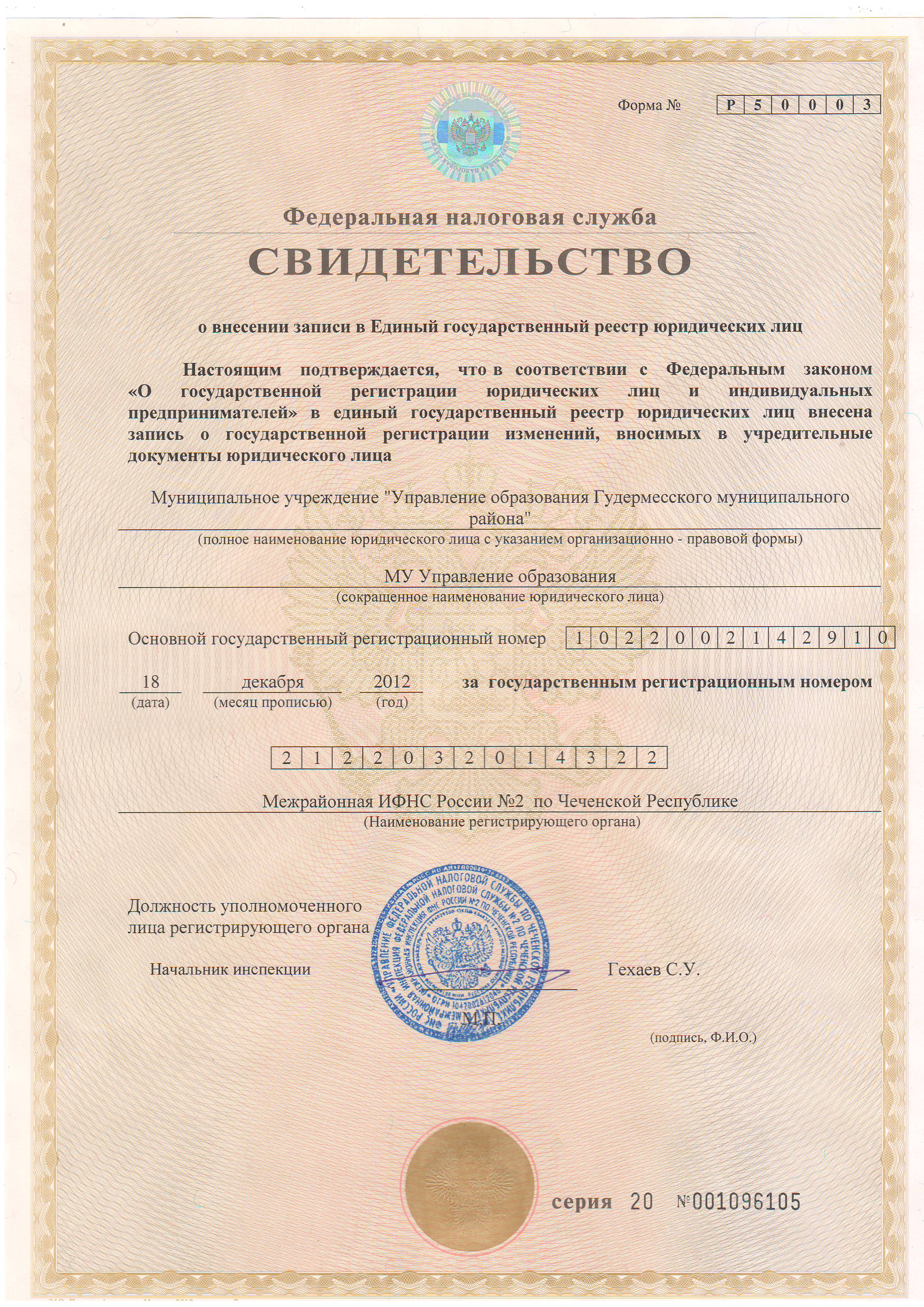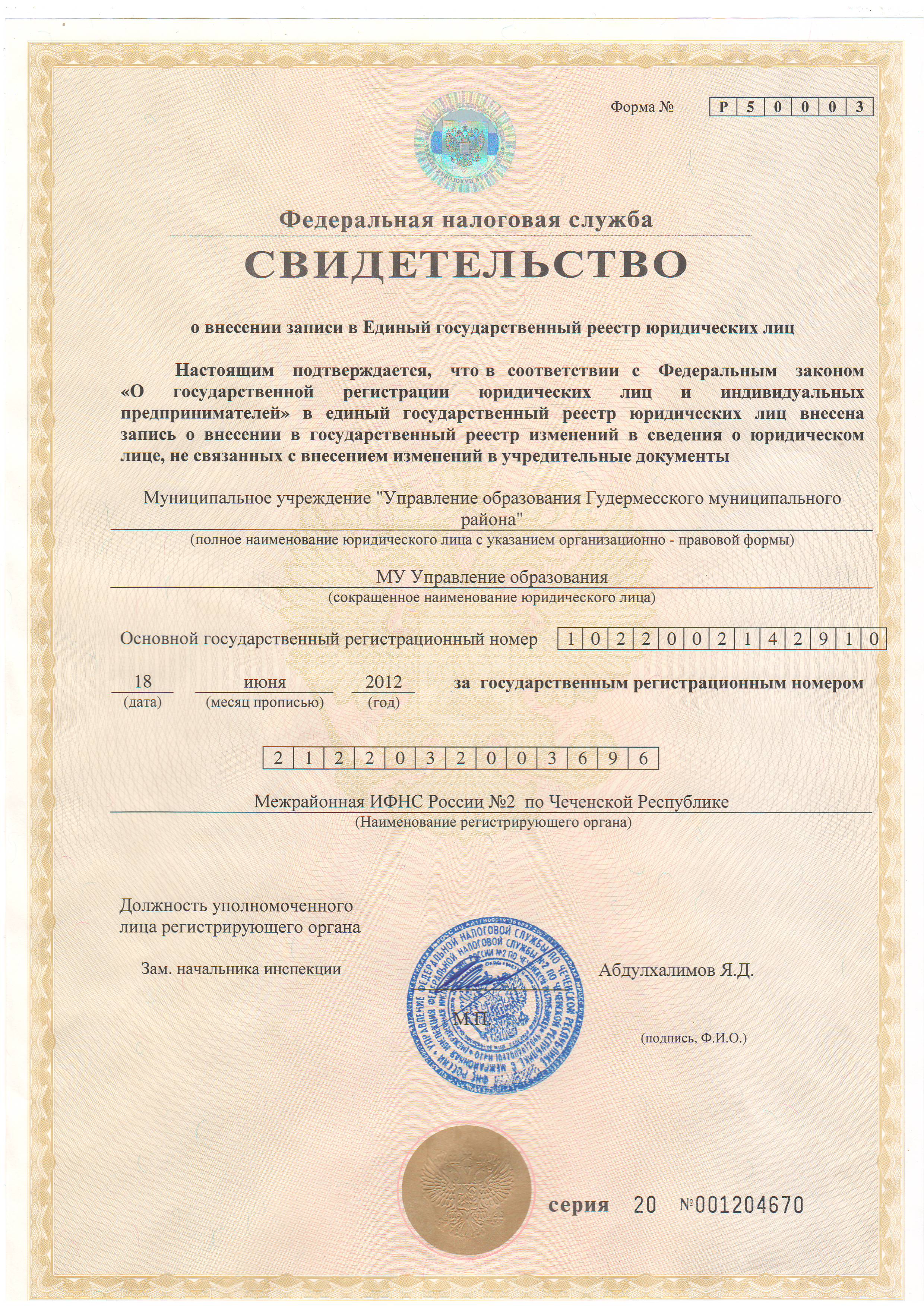 Постановление об утверждении административного регламента «Предоставление информации об организации общедоступного и бесплатного начального общего, основного общего, среднего(полного)общего образования, а также дополнительного образования в общеобразовательных учреждениях, расположенных на территории Гудермесского муниципального района». за № 1487 от 02.05.2017г.
